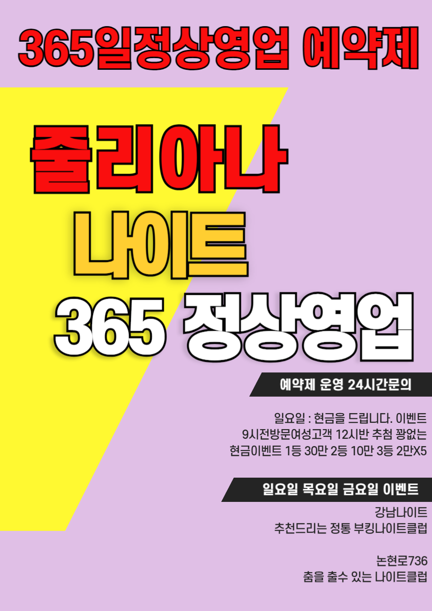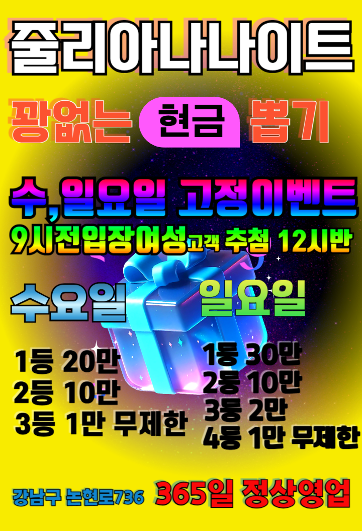 줄리아나나이트는 2025년에 오픈해서 성황리에 영업하고 있는 강남나이트 클럽입니다.